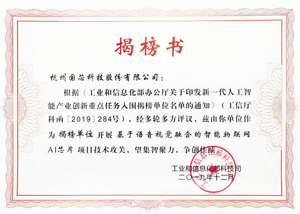 近日,工業(yè)和信息化部辦公廳公布了“新一代人工智能產(chǎn)業(yè)創(chuàng)新重點(diǎn)任務(wù)的入圍揭榜單位和項目名單”。國芯的終端神經(jīng)網(wǎng)絡(luò)項目--基于語音視覺融合的智能物聯(lián)網(wǎng)AI芯片,被列入揭榜名單。